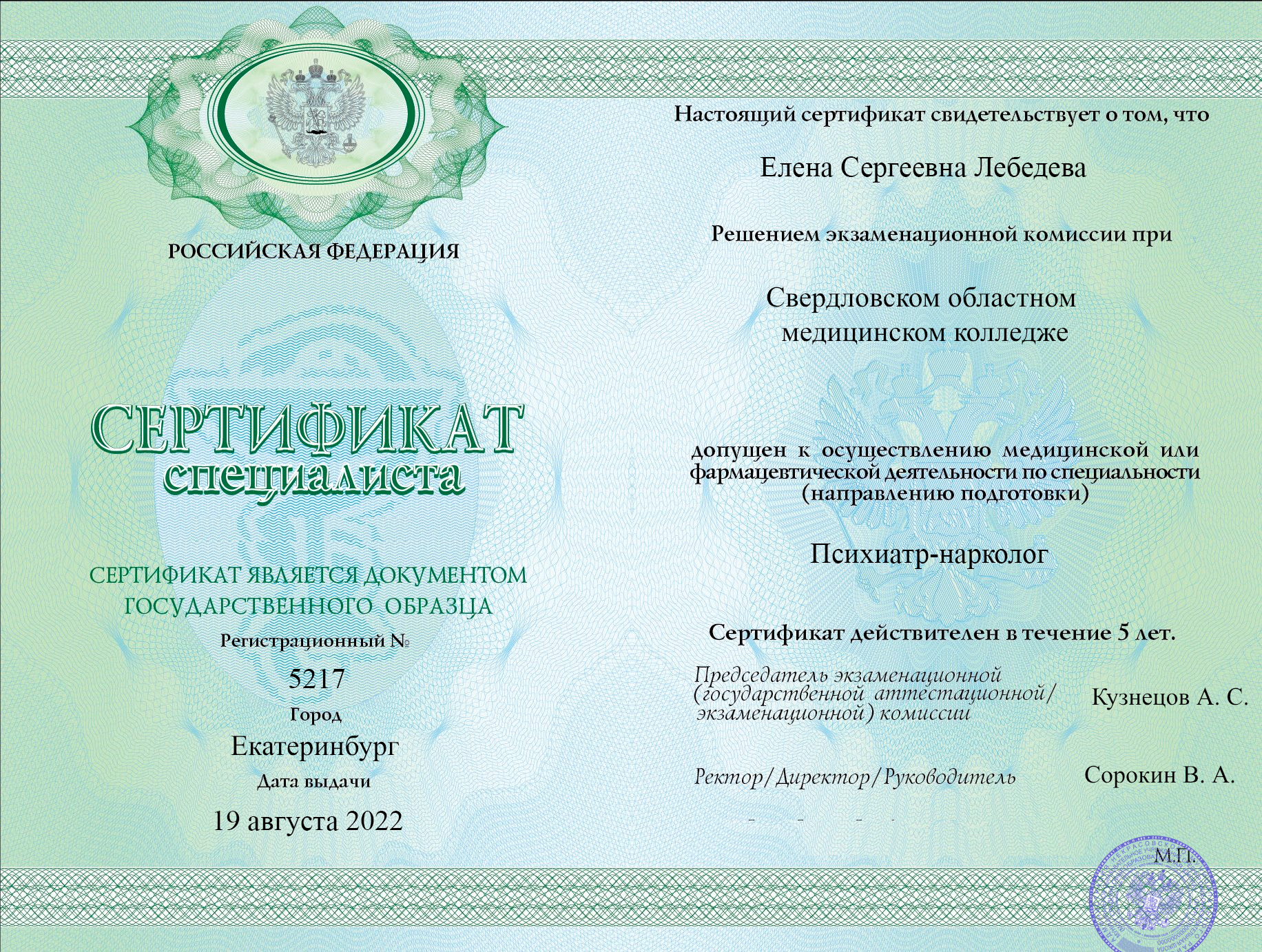 Елена Сергеевна Лебедева врач нарколог клиники доктора Стукаловой в Кремёнках